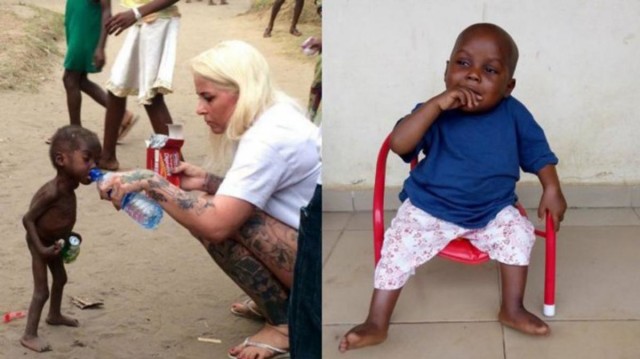 La joven activista encontró al niño desnudo y con los huesos sobresaliendo, producto de la desnutrición. Lo llevó al hospital, le quitaron los parásitos del estómago y recibió transfusiones diarias mientras le daban una dieta especial para recuperar su salud.